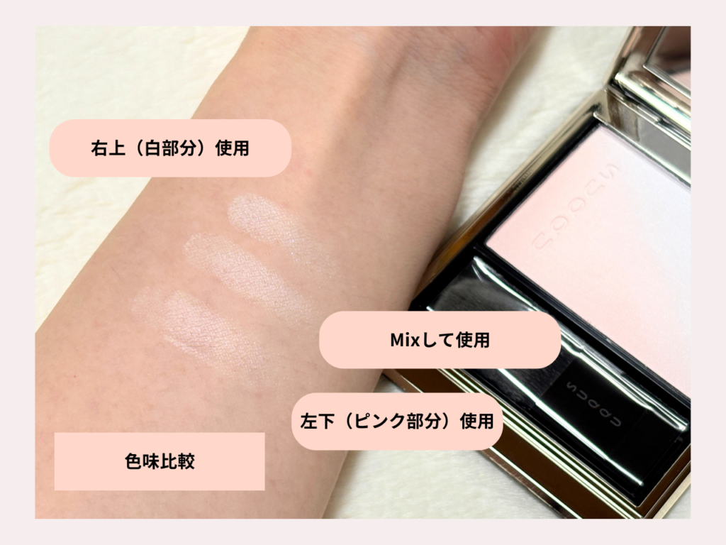 個人的にはピンクと白を軽く混ぜて使う方法がいちばんしっくりきました。